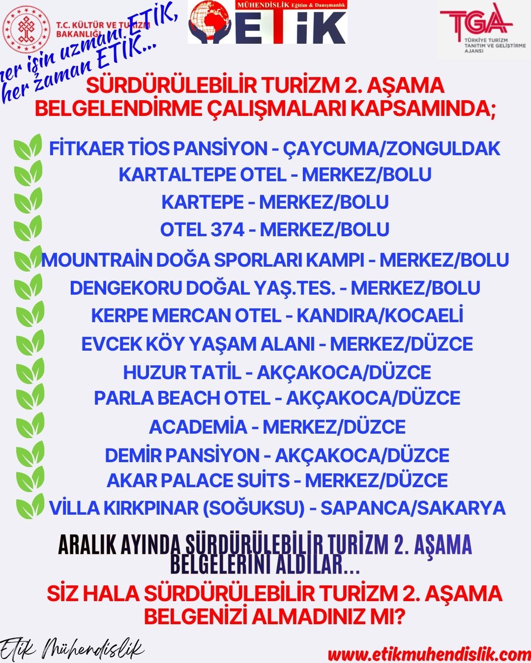 Kültür Bakanlığı admin 24 Ocak 2026 Yorum yapılmamış Sürdürülebilir Turizm 2. Aşama Belge Alan Tesislerimiz (Aralık 2025) Daha Fazla